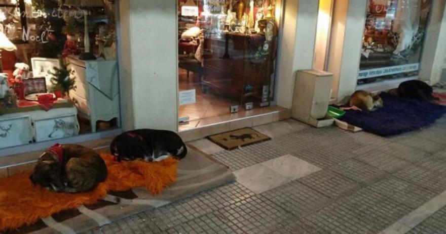 Ένα μεγάλο μπράβο στους καταστηματάρχες της Αλεξανδρούπολης που σκέφτηκαν να ζεστάνουν τα άτυχα αδέσποτα, βάζοντας χαλάκια και κουβέρτες έξω από τα μαγαζιά τους, ώστε να κοιμούνται πιο άνετα οι περιπλανώμενοι σκύλοι και γάτες.