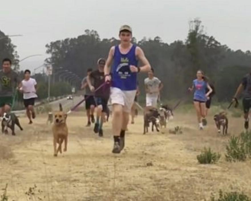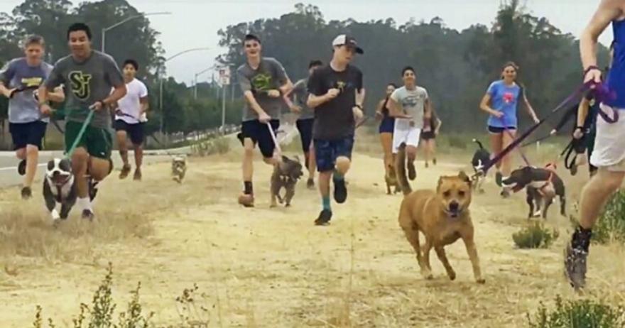 Η ομάδα ανωμάλου δρόμου πρέπει να τρέχει στην πόλη κάθε πρωί, οπότε σκέφτηκαν ότι θα ήταν μια πολύ καλή ιδέα να πάρουν μαζί τους σκυλιά του καταφυγίου στα τρεξίματά τους.