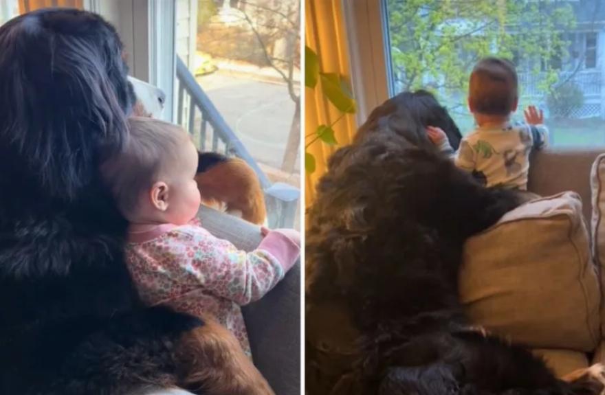 Η Ivy, ο σκύλος Bernese Mountain, παρακολουθεί προσεκτικά το μικρό παιδί σε κάθε ένα από τα βίντεο. Έχει το πόδι της τοποθετημένο πίσω από την πλάτη της για να διασφαλίσει ότι δεν θα πέσει. Και ο τρόπος με τον οποίο οι δυο τους σκύβουν ο ένας στον άλλο δείχνει πόσο πολύ αγαπιούνται.