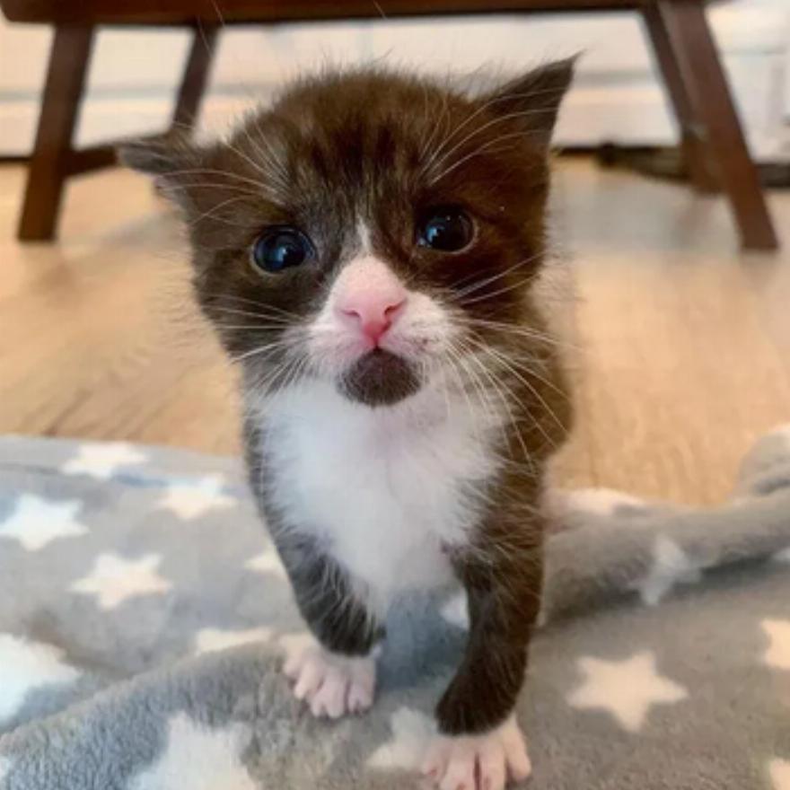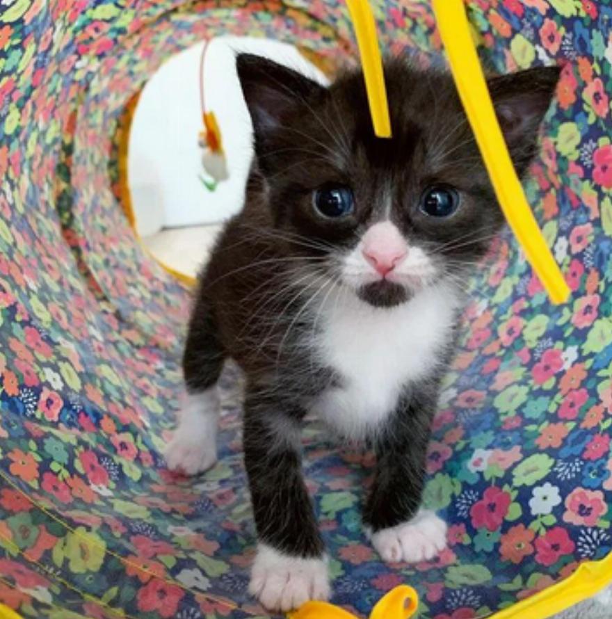 Πριν από 2 μήνες, καλοί Σαμαρείτες άκουσαν κάτι που ακουγόταν σαν κραυγές γάτας έξω από το σπίτι τους και αποφάσισαν να το ερευνήσουν. Προς μεγάλη τους έκπληξη, βρήκαν ένα γατάκι σε μέγεθος παλάμης ολομόναχο.