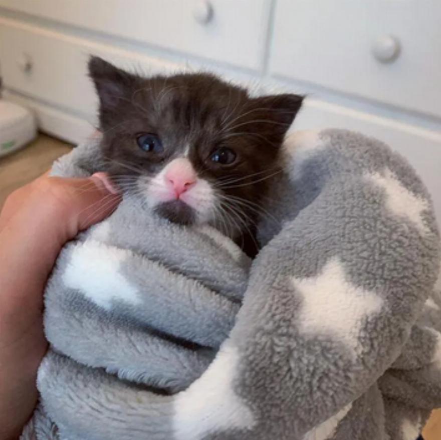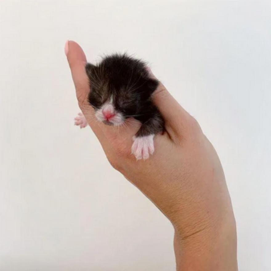 Το μικροσκοπικό σμόκιν ήταν ηλικίας λιγότερο από 24 ωρών και είχε απεγνωσμένη ανάγκη για τροφή όλο το εικοσιτετράωρο. Ζήτησαν βοήθεια και η Caroline Grace, εθελόντρια ανάδοχη του Saving One Life, δεν δίστασε να το αναλάβει.