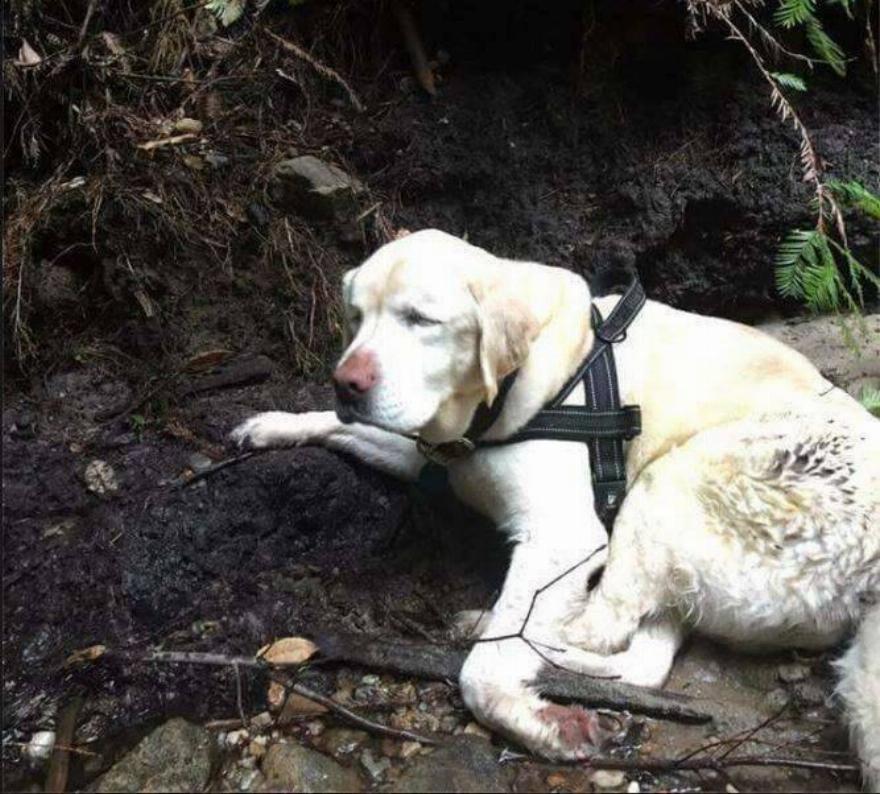 “Περπάτησε ίσως δέκα βήματα, αλλά κινούνταν λίγο αργά”, είπε η Estrada. “Τότε έπεσε πάνω σε έναν κορμό. Συνειδητοποίησα ότι δεν υπήρχε περίπτωση να περπατήσει μόνη της. Έτσι, έβαλα το σκυλί στους ώμους μου και ανεβήκαμε ξανά προς τα πάνω”.