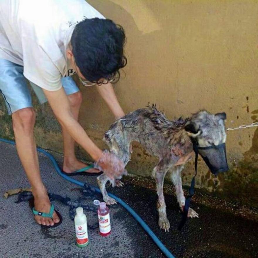 Ο Rico Soegiarto επέστρεφε στο σπίτι του από τη δουλειά του όταν εντόπισε ένα σκυλί να κείτεται στη μέση του δρόμου στο Denpasar του Μπαλί. Ήταν σοβαρά αδυνατισμένο, είχε πληγές σε όλο του το σώμα και του έλειπαν τα περισσότερα μαλλιά.