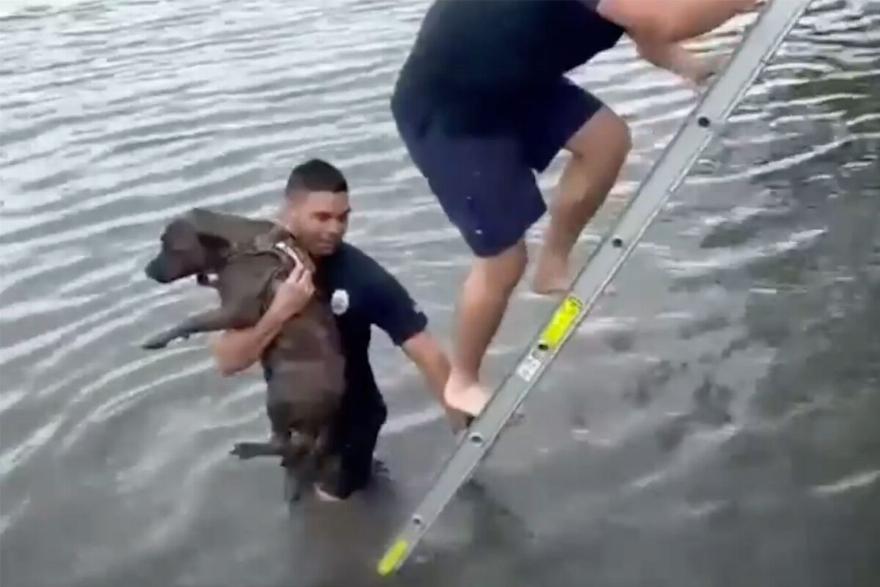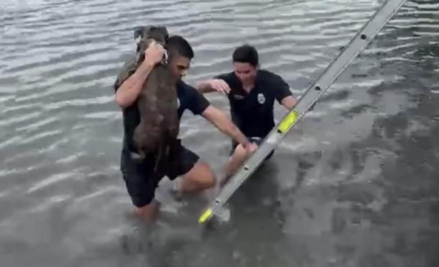 Όταν έφτασαν, το Engine 2 και το Fire Rescue Truck 22 άρχισαν να εργάζονται για το περιστατικό. Μπορείτε να δείτε στο βίντεο ότι ένας πυροσβέστης κατεβαίνει με σκάλα μέσα σε νερό βάθους μηρού. Μόλις φτάνει, καταφέρνει να σύρει το βρεγμένο σκυλί μέσα από το λουρί του.