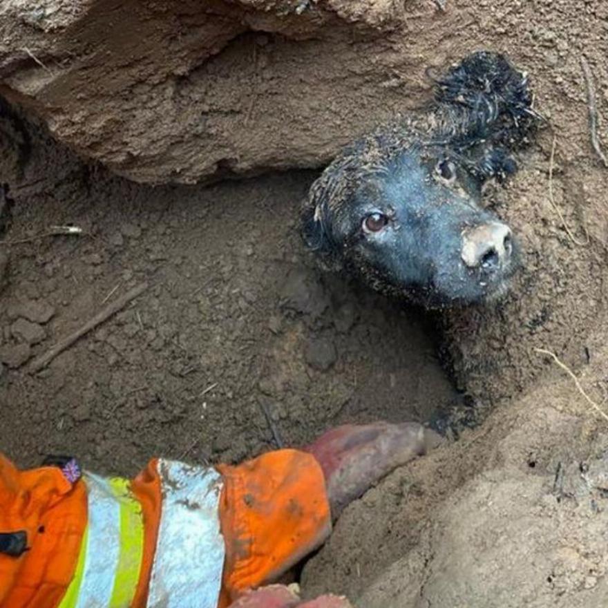 Ευτυχώς, ο σκύλος βρέθηκε, αλλά χρειάστηκε βοήθεια στο σκάψιμο. Πήραν κάποια μέσα για το σκοπό αυτό. Η Πυροσβεστική και Διασωστική Υπηρεσία του Leicestershire μοιράστηκε μερικές φωτογραφίες του σκύλου με μόνο το κεφάλι του έξω από το χώμα!