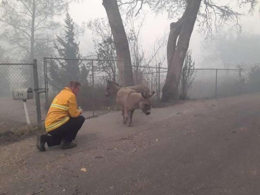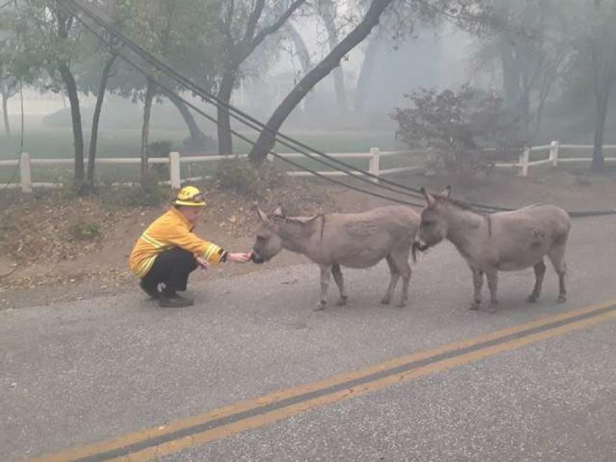 Τα άτυχα γαϊδουράκια προσπαθούσαν να ξεφύγουν από την τρομερή πυρκαγιά που μαίνεται στη γειτονιά Paradise στους πρόποδες της Σιέρα Νεβάδα και στοίχισε τη ζωή τόσο σε ανθρώπους όσο και σε οικόσιτα και άγρια ζώα.