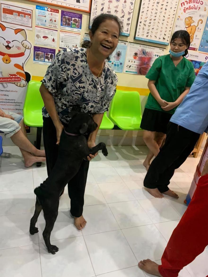 Η κτηνιατρική κλινική Putahracsa στο Bang Pu δημοσίευσε βίντεο παρακολούθησης του κουταβιού να περπατάει μέχρι το κατώφλι της πόρτας τους. Περίμενε μπροστά και γαύγισε, στη συνέχεια έβαλε τα πόδια του στην πόρτα μέχρι κάποιος τελικά να τον αφήσει να μπει μέσα.