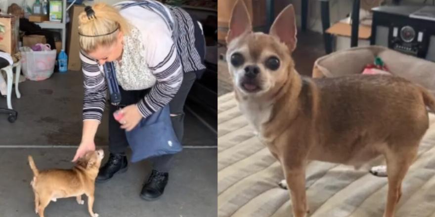 Ένα ηλικιωμένο τσιουάουα διάσωσης μόλις που μπόρεσε να συγκρατήσει τον ενθουσιασμό του όταν συνειδητοποίησε ότι η ιδιοκτήτριά του μόλις είχε επιστρέψει στο σπίτι.