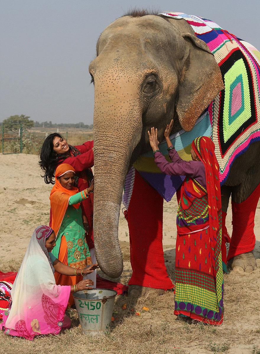 Οι χειμώνες στη μακρινή βόρεια Ινδία είναι πολύ κρύοι, οπότε οι εθελοντές του Κέντρου Φροντίδας και Διατήρησης Ελεφάντων πήραν την πρωτοβουλία να πλέξουν τεράστια πουλόβερ για να προστατέψουν τους ελέφαντες από το ψύχος.