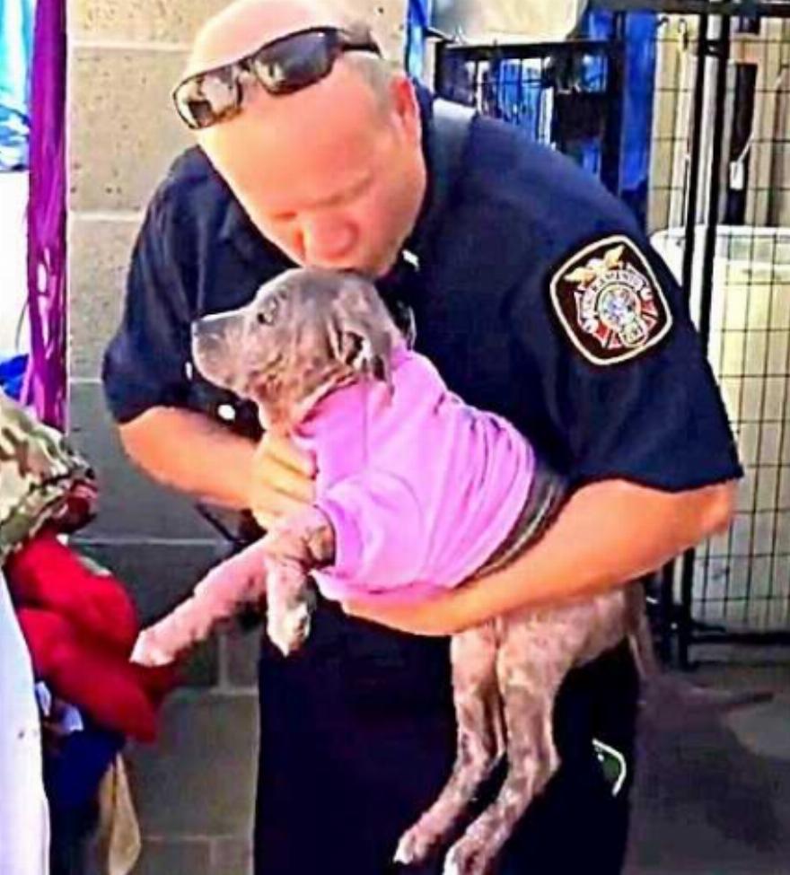 Ο πυροσβέστης Mike Thawley ήταν καθ’ οδόν για μια κλήση διάσωσης όταν εντόπισε την Chunk άψυχη δίπλα το δέντρο. Ο Μάικ παρακολούθησε την κλήση διάσωσης και μετά επέστρεψε πίσω, στο χτυπημένο σκυλάκι.