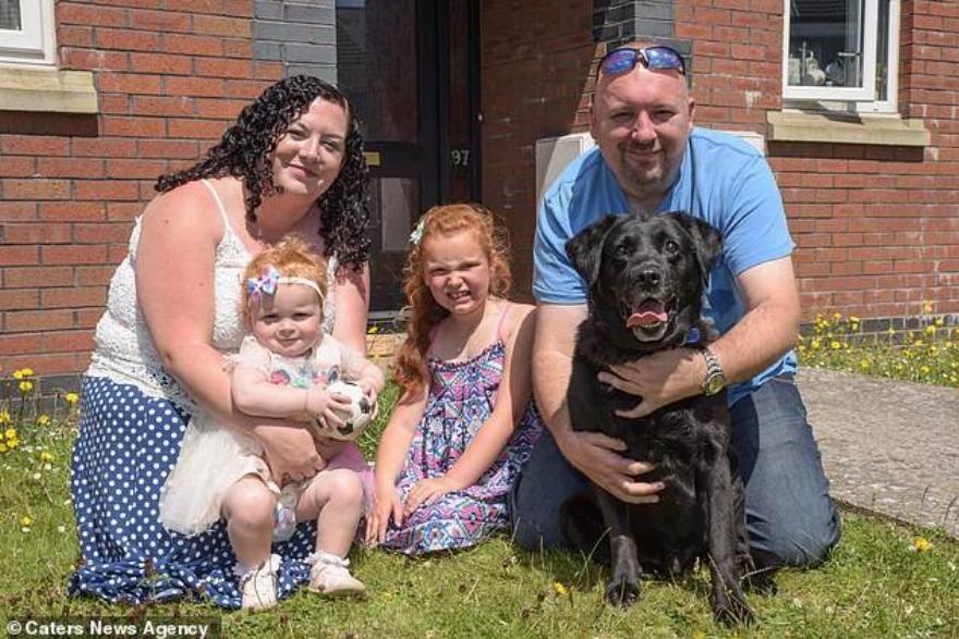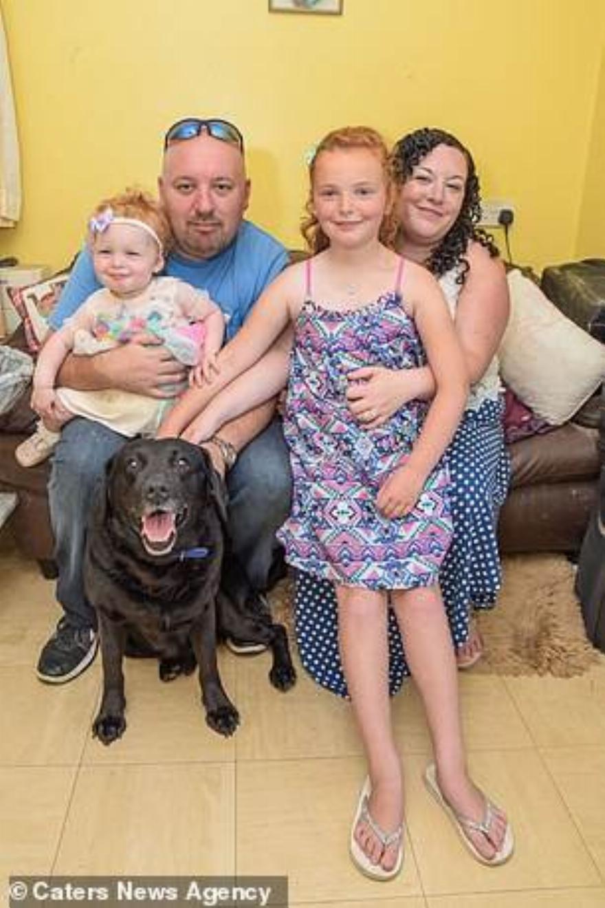 Ο Robert Smith (δεξιά) με τη σύντροφό του Samantha Bowen (αριστερά) και τις κόρες τους Ella-Louise Bowen-Smith (κέντρο) και Mia-Grace Bowen-Smith (αριστερά στην αγκαλιά της Samantha) και τον σκύλο τους Buster που είχε εξαφανιστεί για εννέα χρόνια