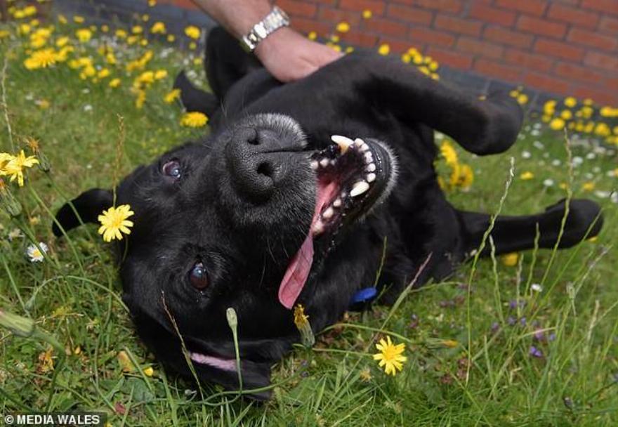 Αξιολάτρευτοι! Η εξαφάνισή του δεν άφησε τον Buster να σταματήσει να απολαμβάνει το τρίψιμο της κοιλιάς του στον κήπο.