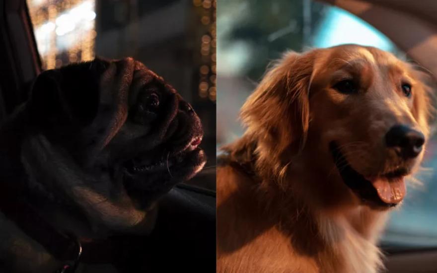 Καθ’ όλη τη διάρκεια του κλιπ των 21 δευτερολέπτων, τα σκυλιά της Bennett εμφανίζονται υπνωτισμένα από όλα αυτά, απολαμβάνοντας σιωπηλά κάθε λαμπερό κτίριο καθώς περνούν αργά.