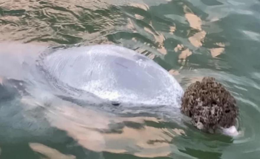 Η εθελόντρια Lyn McPherson, η οποία ταΐζει τα δελφίνια, δήλωσε στο ABC: “(Φέρνει) αντικείμενα με το ράμφος του, και στη συνέχεια μας τα παρουσιάζει προσεκτικά.