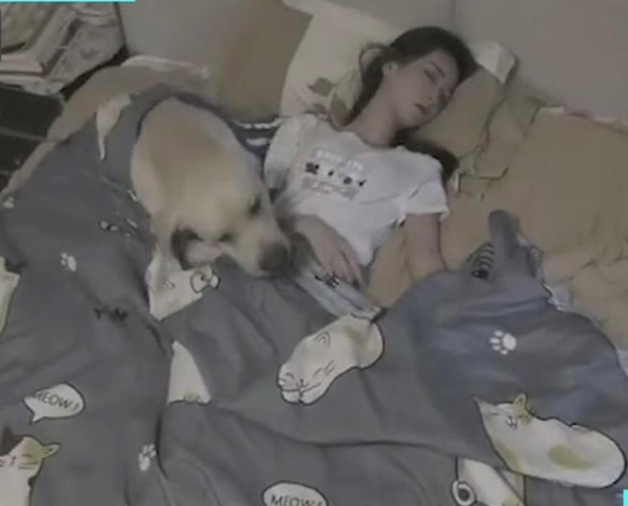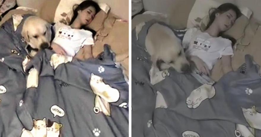 Όταν η νεαρή γυναίκα ασιατικής καταγωγής είδε την καταγραφή, έμεινε άφωνη και συγκινημένη βλέποντας πώς ο σκύλος της τη φροντίζει κάθε βράδυ, προστατεύοντάς την από το κρύο.