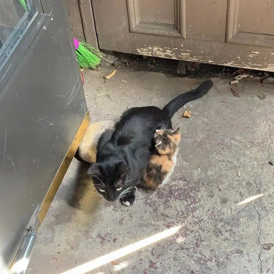 Μια ασπρόμαυρη γάτα εντοπίστηκε με το γατάκι της σε μια αυλή στο Μπρούκλιν της Νέας Υόρκης. Πρόκειται για μια στοργική μαμά γάτα, που προσέχει το γατάκι της σε κάθε του βήμα.