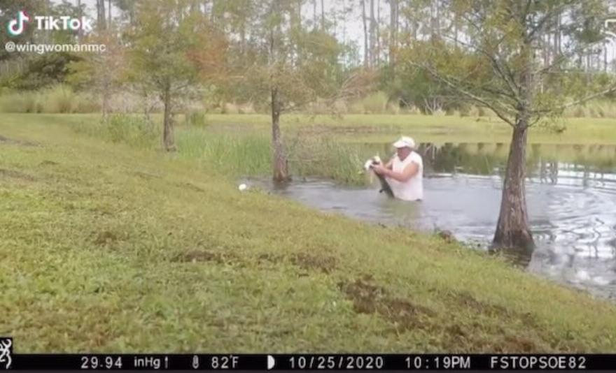Ένας άνδρας έσωσε έναν σκύλο από τη θανατηφόρα λαβή ενός αλιγάτορα ανοίγοντας το στόμα του για να απελευθερώσει το σκυλί. Ένα βίντεο της διάσωσης εμφανίστηκε στα κανάλια κοινωνικής δικτύωσης- το περιστατικό συνέβη στη Φλόριντα και καταγράφηκε από κάμερα άγριας ζωής (η ημερομηνία που εμφανίζεται στο βίντεο: 25/10/2020).