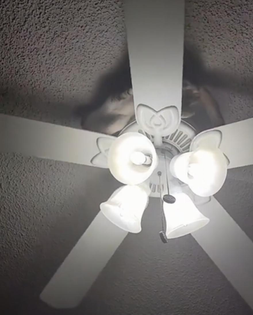 Απλά απολαμβάνει μια χαλαρή βόλτα… στην κορυφή του ανεμιστήρα οροφής.