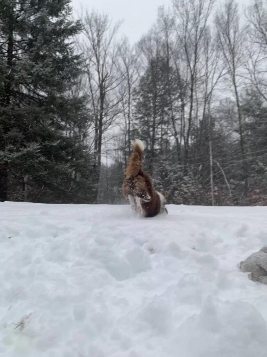 Η Maple δεν θα μπορούσε να είναι πιο ενθουσιασμένη και αμέσως άρχισε να σκάβει τούνελ μέσα στο χιόνι σαν σκύλος, απόλυτα ενθουσιασμένη που εξερευνούσε έναν εντελώς διαφορετικό κόσμο. Κάθε φορά που αναδύθηκε ξανά είχε το πιο χαρούμενο βλέμμα στο πρόσωπό της και δεν μπορούσε να περιμένει να βουτήξει ξανά για περισσότερα.
