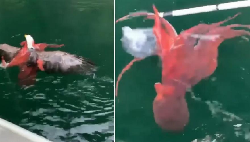 Οι αετοί είναι εξαιρετικοί κυνηγοί. Μπορούν να αρπάξουν μια κατσίκα του βουνού ή να κάνουν βουτιά προς ένα ποτάμι για να πιάσουν έναν σολομό. Αυτή την εβδομάδα, ωστόσο, ένας πεινασμένος αετός μπορεί να εκτίμησε λάθος το μέγεθος του απίθανου στόχου του, ενός γιγάντιου χταποδιού του Ειρηνικού. Όταν ο αετός βούτηξε για να προσπαθήσει να βγάλει το χταπόδι από το νερό.