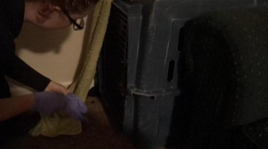 Όταν άνοιξε την πόρτα ενός διαμερίσματος, τον χτύπησε μια απαίσια μυρωδιά και στη συνέχεια παρατήρησε ένα μικρό πλαστικό κλουβί σκύλου στη γωνία του δωματίου. Μέσα σε αυτό βρίσκονταν δύο κουτάβια ηλικίας 7 μηνών.
