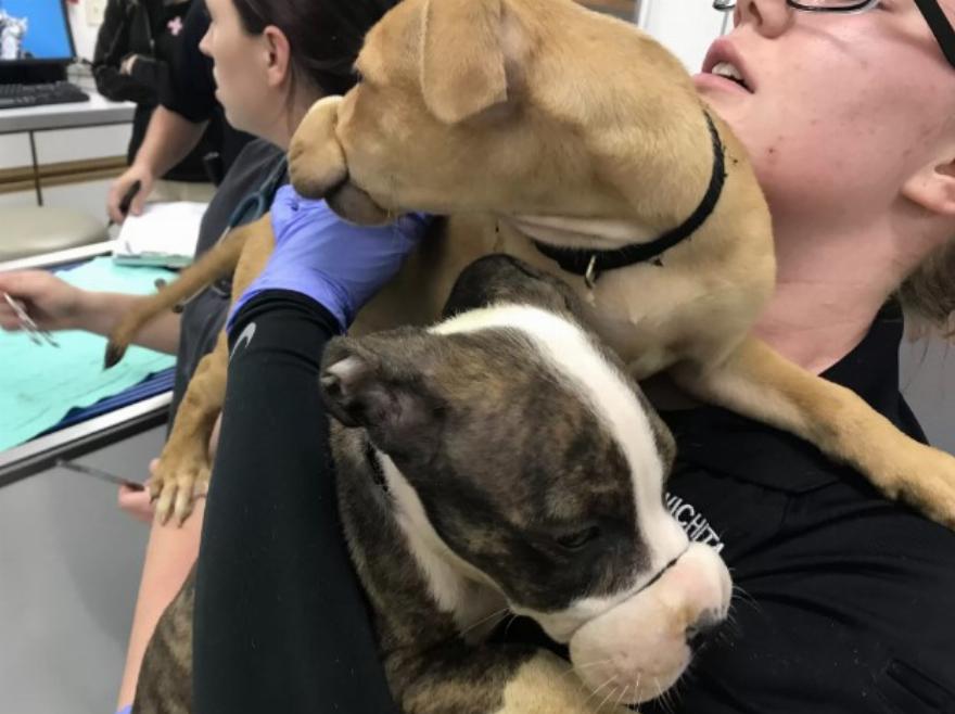 Και τα δύο σκυλιά είχαν δύο λαστιχάκια τυλιγμένα γύρω από τις μύτες τους, τα οποία ο κτηνίατρος πίστευε ότι είχαν μείνει πάνω τους για 12 έως 24 ώρες. Ο κτηνίατρος έπιασε τις ταινίες με λαβίδα και τις έκοψε, ενώ η Coffman και οι δύο παρευρισκόμενοι αξιωματικοί του τμήματος ελέγχου ζώων πάλευαν με τα δάκρυα.