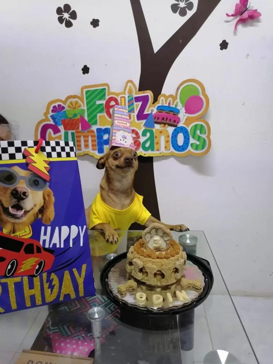 Ακολουθεί βίντεο με τον Odin να τα απολαμβάνει όλα (συμπεριλαμβανομένης της ξεχωριστής τούρτας του):