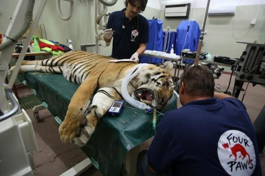 Ανάμεσά τους ήταν και ο Λαζίζ, μια υπέροχη 9χρονη τίγρη. Με τραγικό τρόπο είχε περάσει όλη του την ύπαρξη σε ένα μικροσκοπικό κλουβί, στερούμενος εντελώς τα ερεθίσματα και την κοινωνική αλληλεπίδραση. Αλλά τώρα, ευτυχώς, η δοκιμασία τελείωσε για αυτό το αιλουροειδές. Μετά από ένα μακρύ ταξίδι στη Νότια Αφρική, απελευθερώθηκε επιτέλους.” Οι Four Paws ανέφεραν στη σελίδα τους στο Facebook: