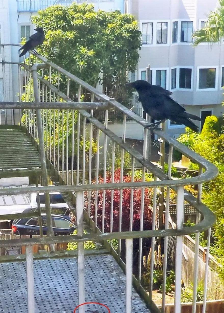 Πριν από μερικά χρόνια, η Melinda Green άρχισε να παρατηρεί ότι τα κοράκια περνούσαν περιστασιακά για να ξεκουραστούν στην έξοδο κινδύνου στο Σαν Φρανσίσκο.