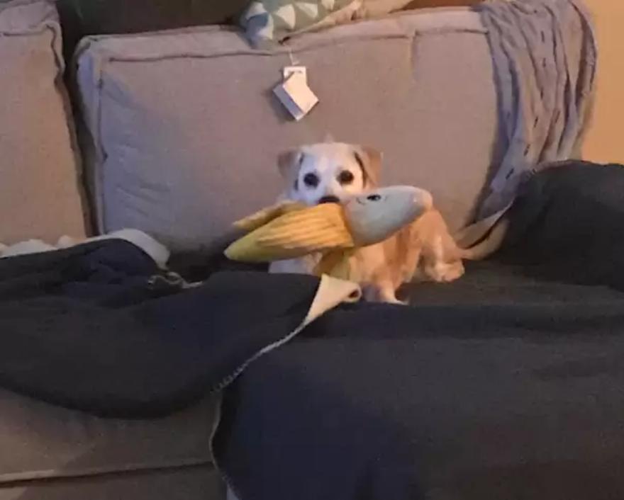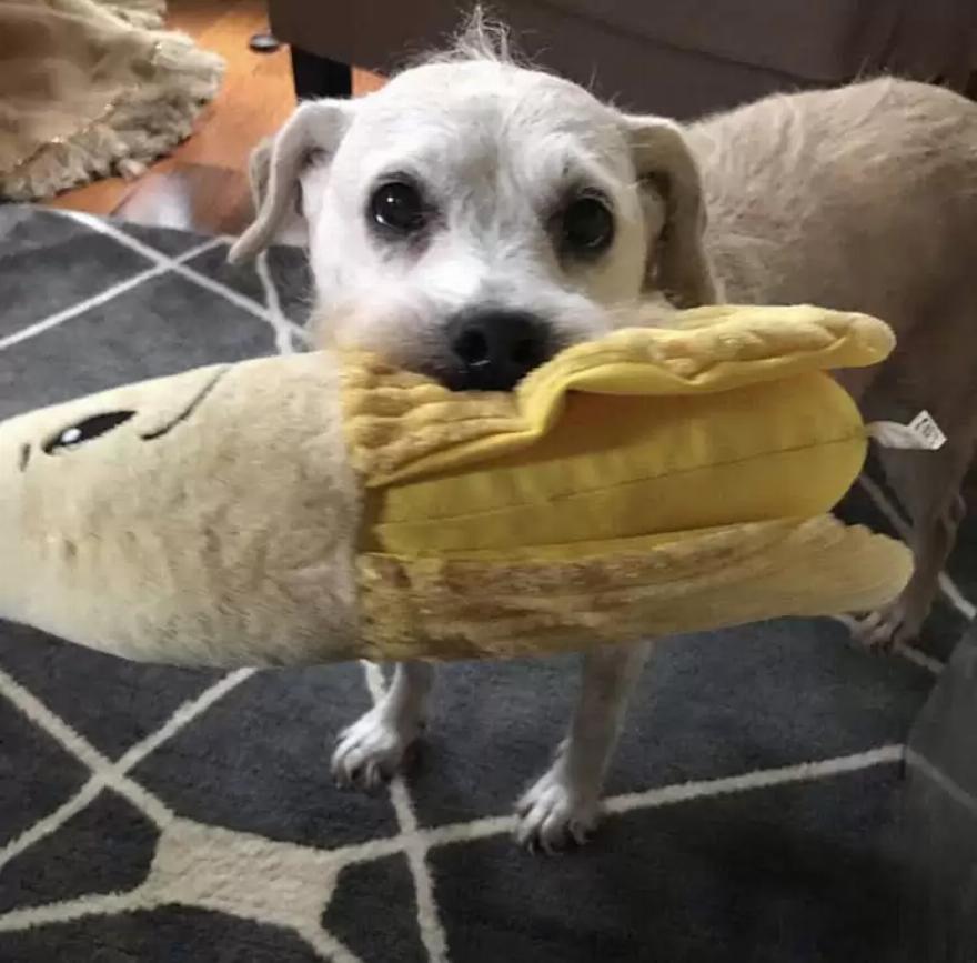 Το γλυκύτατο τεριέ είναι αφοσιωμένο στη μαμά της, αλλά τίποτα δεν μπορεί να συναγωνιστεί το παιχνίδι μπανάνα της. Μπορεί να είναι μόνο γέμιση και κίτρινο ύφασμα, αλλά για την Tessa είναι ξεχωριστή – και φροντίζει όλοι οι άλλοι να αναγνωρίζουν ότι είναι επίσης ξεχωριστή.