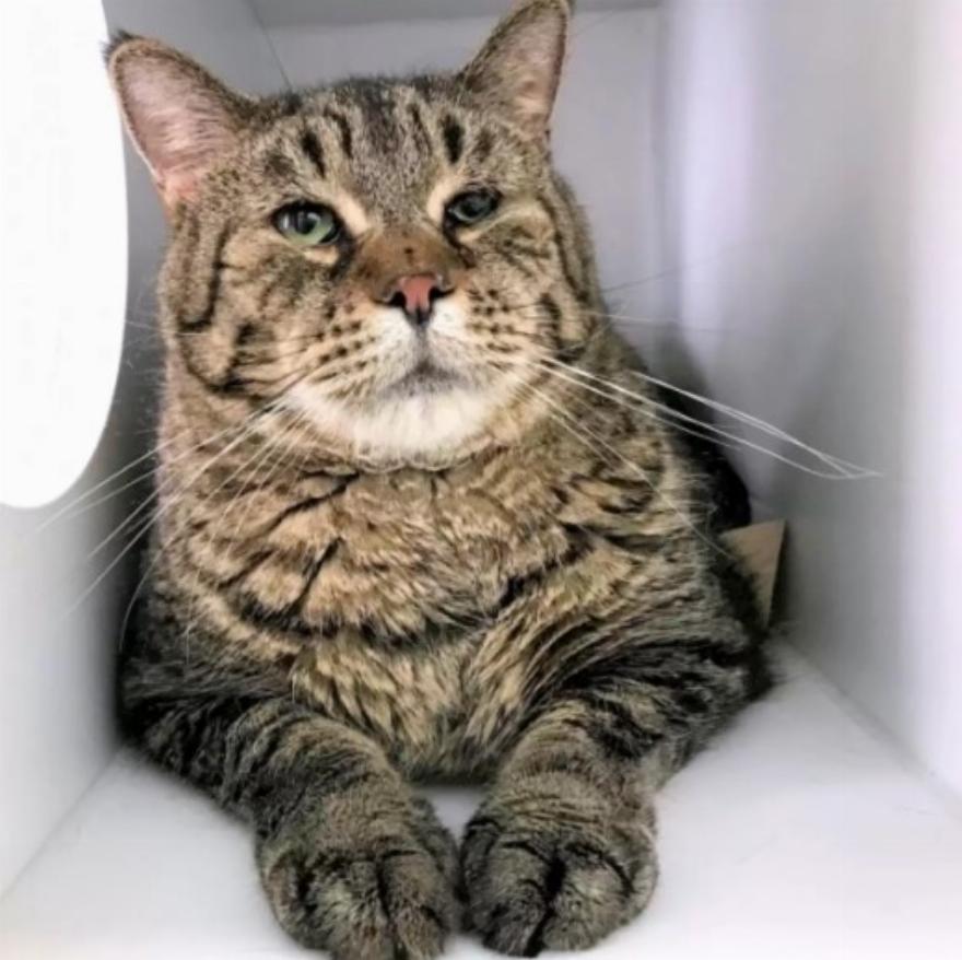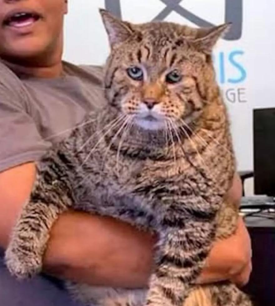 Σύμφωνα με τη σελίδα υιοθεσίας του BeeJay, το καφέ και άσπρο tabby ζυγίζει επιβλητικά 26 κιλά – περισσότερο από το διπλάσιο βάρος του μέσου ενήλικου γατούλη σας.