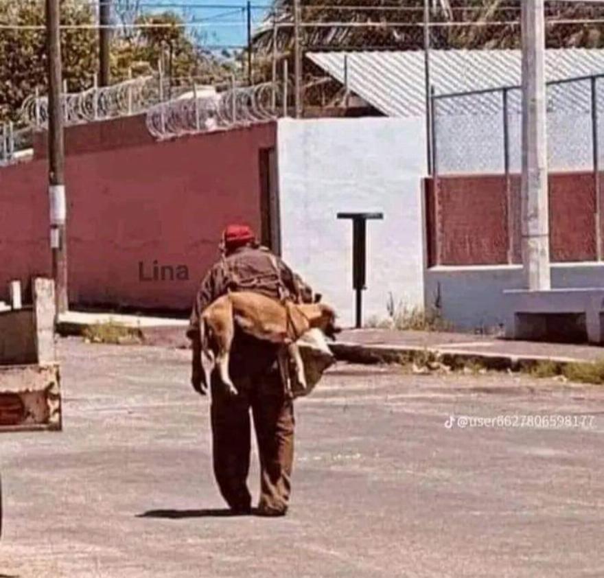 Όταν τον ρώτησαν γιατί κουβαλάει τον σκύλο του, τους απάντησε…. γιατί έχει πολλή ζέστη κ καίγονται τα πατουσάκια του όταν περπατάει