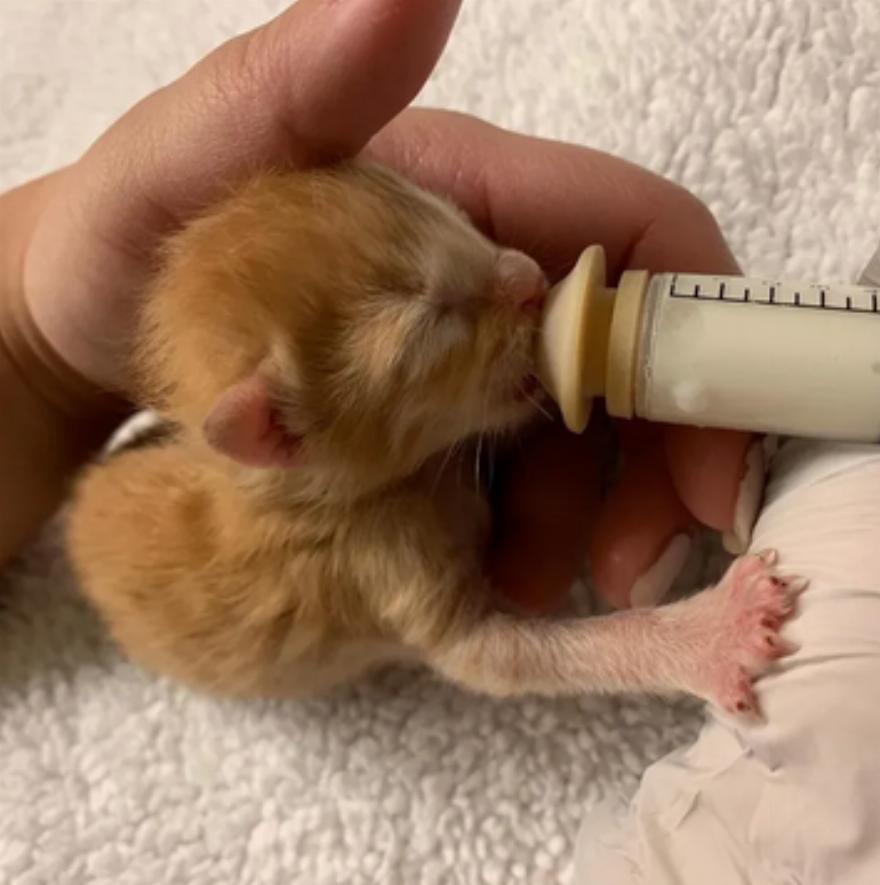 Η Laura Malone της Mini Cat Town, η οποία ειδικεύεται στη φροντίδα νεογέννητων γατιών, ανέλαβε να βοηθήσει.