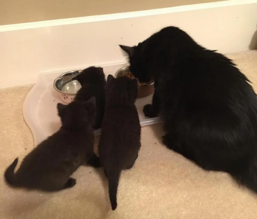 Τα μικροσκοπικά “κουτάβια” ακολουθούν την Belle παντού, μαθαίνοντας από τη μαμά τους πώς να είναι μια μεγάλη γατούλα.