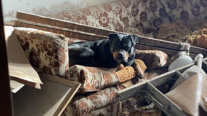 Αλλά έκπληκτοι είδαν έναν άλλο σκύλο, ένα μεγάλο ροτβάιλερ, να κάθεται σε έναν κοντινό καναπέ. Οι διασώστες θεώρησαν καλύτερο να χωρίσουν τα δύο σκυλιά προκειμένου να σώσουν με ασφάλεια το βαριά τραυματισμένο, το οποίο ονόμασαν Seska.