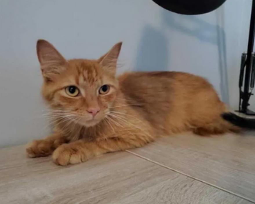 Το πορτοκαλί tabby εμφανίστηκε αρχικά μόνο του στη βεράντα της οικογένειας, νιαουρίζοντας για φαγητό. Ήταν πολύ ντροπαλή, αλλά τόσο πεινασμένη που βρήκε αρκετό θάρρος για να ζητήσει βοήθεια.