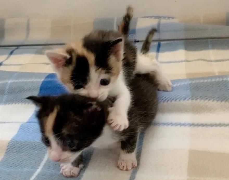 Δύο γατάκια calico βρέθηκαν μαζί κοντά στην άκρη του δρόμου. Από τότε είναι αχώριστα.