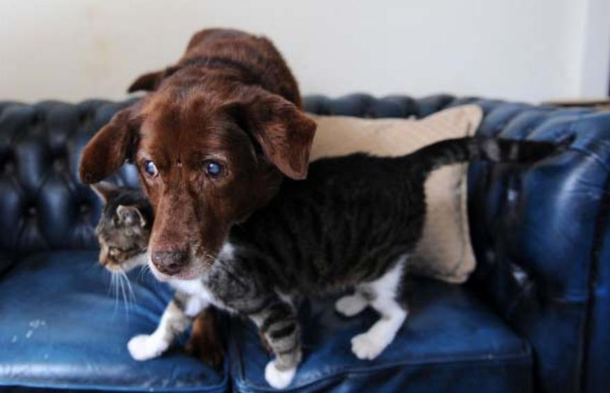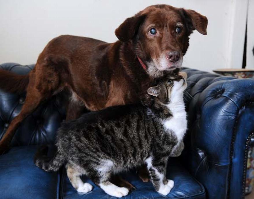 Χρησιμοποιώντας τα πόδια της τον έπεισε να βγει από το καλάθι του και να την ακολουθήσει στον κήπο. Αυτό ήταν! Από τότε η γάτα αποτελεί τα… μάτια του Terfel, ενώ δεν διστάζουν να κοιμηθούν παρέα αλλά και να μοιραστούν τα παιχνίδια. Σήμερα, το απίθανο ζευγάρι είναι αχώριστο, αποδεικνύοντας ότι σκυλιά και γάτες μπορούν να γίνουν αληθινοί φίλοι.
