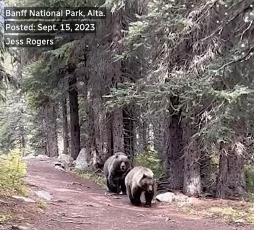 Δύο αρκούδες γκρίζλι ακολούθησαν μια ομάδα πεζοπόρων σε ένα μονοπάτι στο Εθνικό Πάρκο Μπανφ στην Αλμπέρτα του Καναδά για 20 λεπτά προς μεγάλη έκπληξη των ανθρώπων.