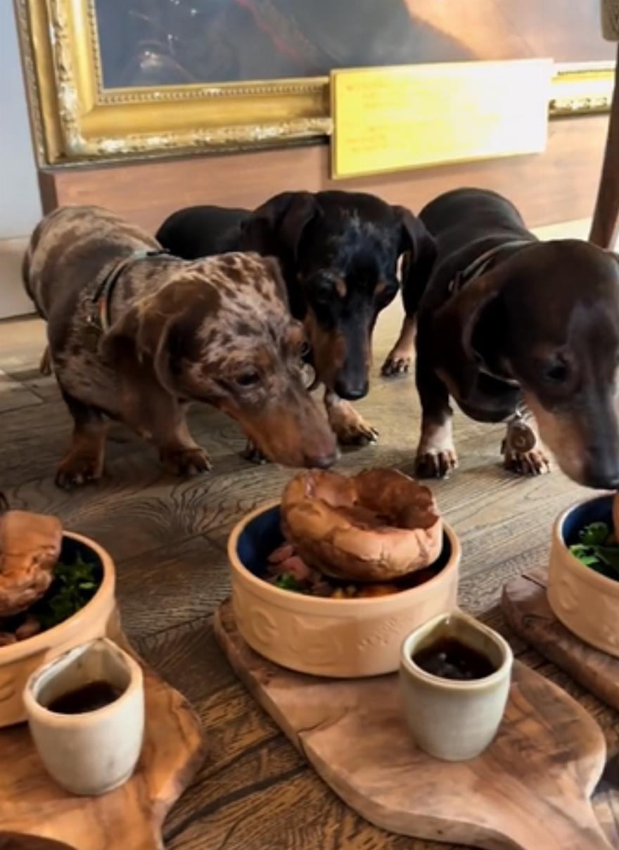Στην ανάρτηση, που μοιράστηκε στο TikTok, με το όνομα χρήστη The_daxie_trouble, τα τέσσερα σκυλιά, Barney, Benji, Monty και Ozzie, φαίνονται να καταβροχθίζουν το ατομικό τους δείπνο, το οποίο συνοδεύεται από λαχανικά και μια πουτίγκα Yorkshire, μαζί με λίγη σάλτσα στο πλάι για να τα ολοκληρώσει όλα.