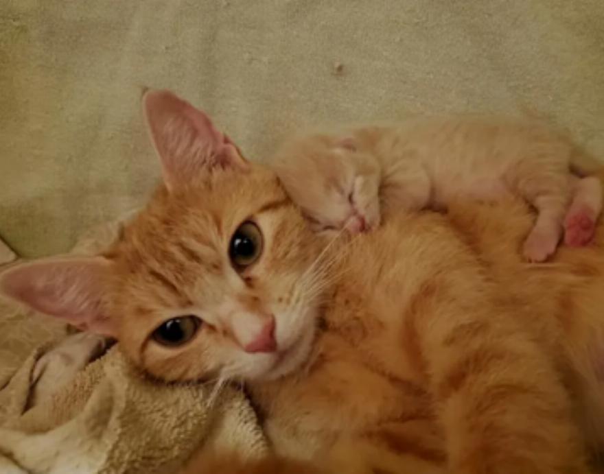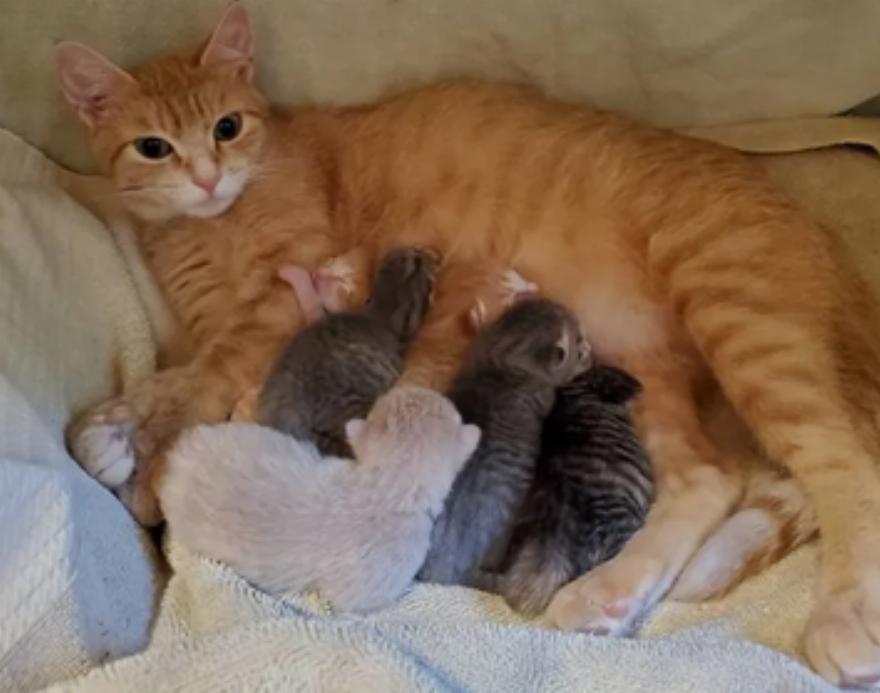 Νωρίτερα φέτος, το Meow Village, μια ομάδα διάσωσης αποκλειστικά εθελοντών στην Ορόρα του Όρεγκον, έλαβε μια κλήση για ένα πορτοκαλί tabby που χρειαζόταν διάσωση. Μια γυναίκα βρήκε την αδέσποτη γάτα κάτω από τη βεράντα της με γατάκια.