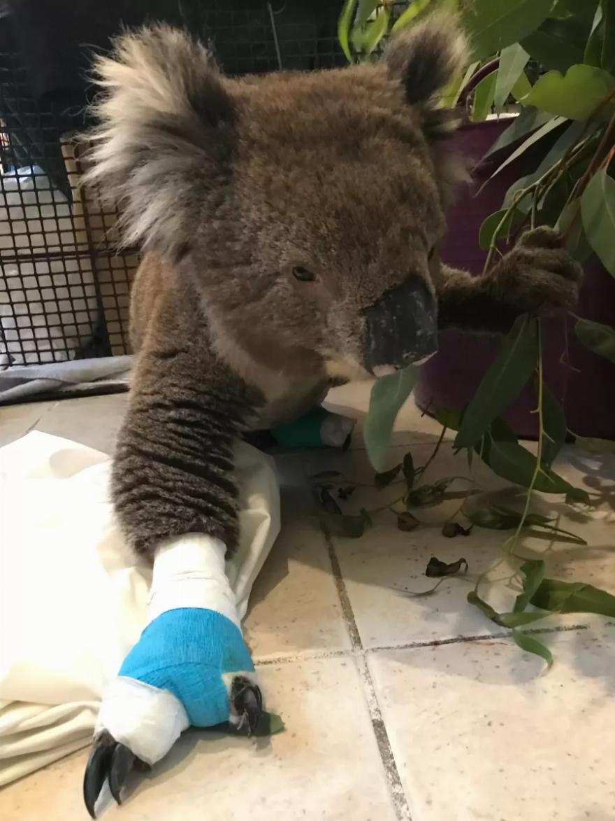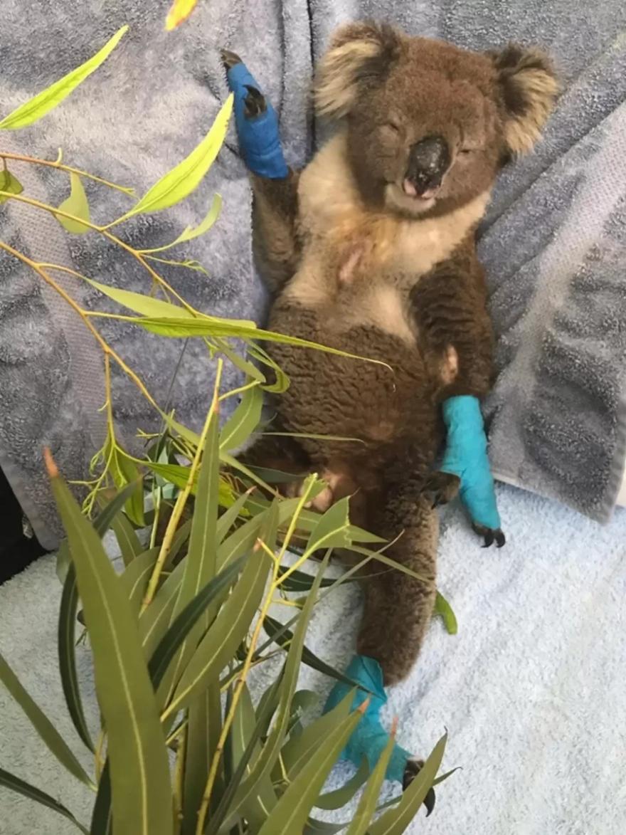 “Καθώς οι πατούσες του ήταν όλες δεμένες, δεν μπορούσε να σκαρφαλώσει ή να μπει στο κανονικό κλουβί που χρησιμοποιούμε για τα κοάλα που φροντίζουμε, οπότε έπρεπε να σκεφτούμε κάτι διαφορετικό και φτιάξαμε ένα αυτοσχέδιο κλουβί στην κουζίνα μας για να μπορούμε να είμαστε πάντα κοντά του”, δήλωσε η Lucy Francis στο The Dodo. “Χρησιμοποιήσαμε ένα στρώμα κατασκήνωσης για να κάθεται και τοποθετήσαμε ένα μαξιλάρι πίσω του για να γέρνει προς τα πίσω, καθώς του ήταν δύσκολο να καθίσει σε κανονική στάση κοάλα. Ήταν σαφώς σε κατάσταση σοκ, φοβισμένο και καλυμμένο με αιθάλη και στάχτη από τη φωτιά”.