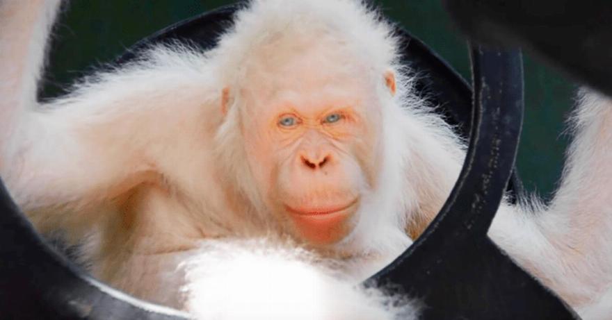 Μακριά από τους ανθρώπους που μπορεί να της κάνουν κακό, ο μοναδικός ζωντανός αλμπίνος ουρακοτάγκος στον κόσμο μπορεί πλέον να ζήσει το υπόλοιπο της ζωής του στο δικό του προσωπικό νησί-καταφύγιο στο Βόρνεο.