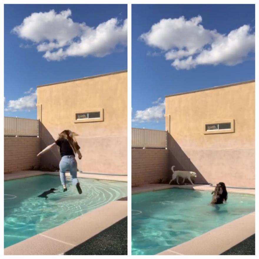“Δεν ήξερα ότι όλα τα σκυλιά δεν μπορούσαν να κολυμπήσουν, οπότε άκουσα τον παφλασμό και γύρισα και τότε μου έκανε κλικ ότι [η MJ] απλά βυθιζόταν στον πάτο σαν βράχος”, δήλωσε η Beavers στο In The Know. “Ξέχασα εντελώς ότι έκανα καν ένα TikTok! Ήταν απλά το ένστικτό μου να βγάλω τα παπούτσια μου και να ελέγξω για το τηλέφωνό μου και στη συνέχεια να πηδήξω γρήγορα”.