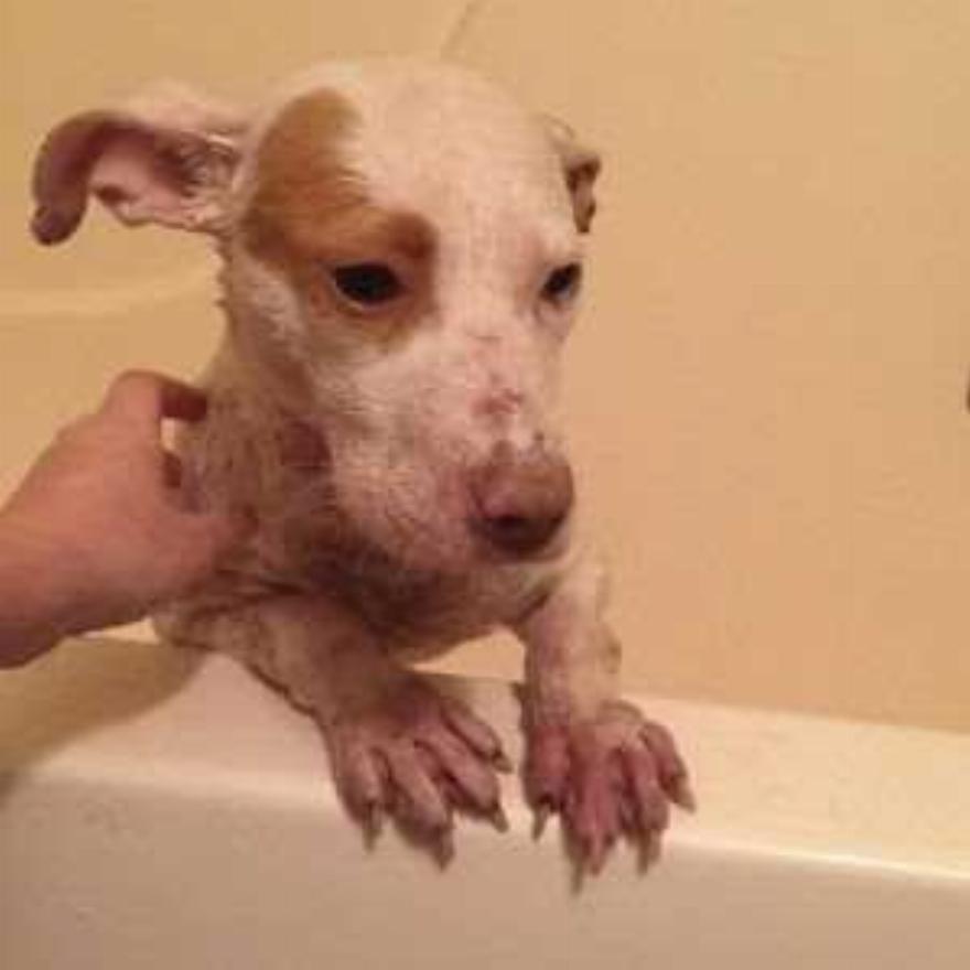 Ήταν υποσιτισμένη, λιποβαρής και είχε κάποιες δερματικές λοιμώξεις αλλά με τη σωστή αγάπη και φροντίδα έγινε ένα υγιές χαρούμενο κουτάβι.