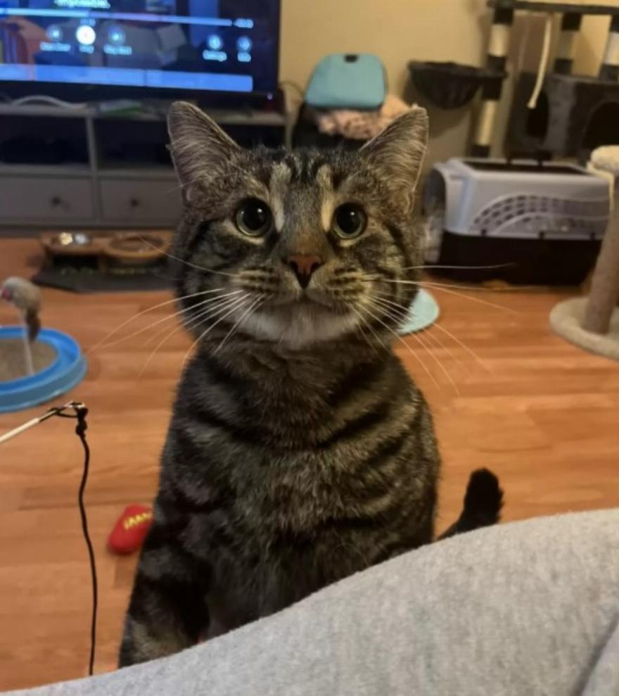 Τα κάποτε θολωμένα μάτια της γάτας άνοιξαν ξαφνικά πιο ανοιχτά, γεμίζοντας περιέργεια. Τα αυτιά του, τα οποία σε κάποιο σημείο ήταν πεπλατυσμένα, σηκώθηκαν καθώς άρχισε να δέχεται όλους τους νέους ήχους: το άνοιγμα μιας σακούλας με λιχουδιές, τα φιλιά των γονιών του και, για πρώτη φορά, τη σιωπή.