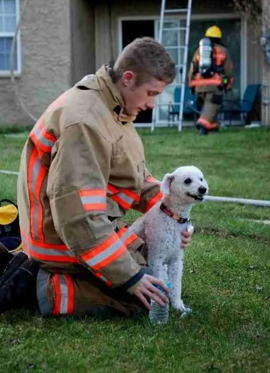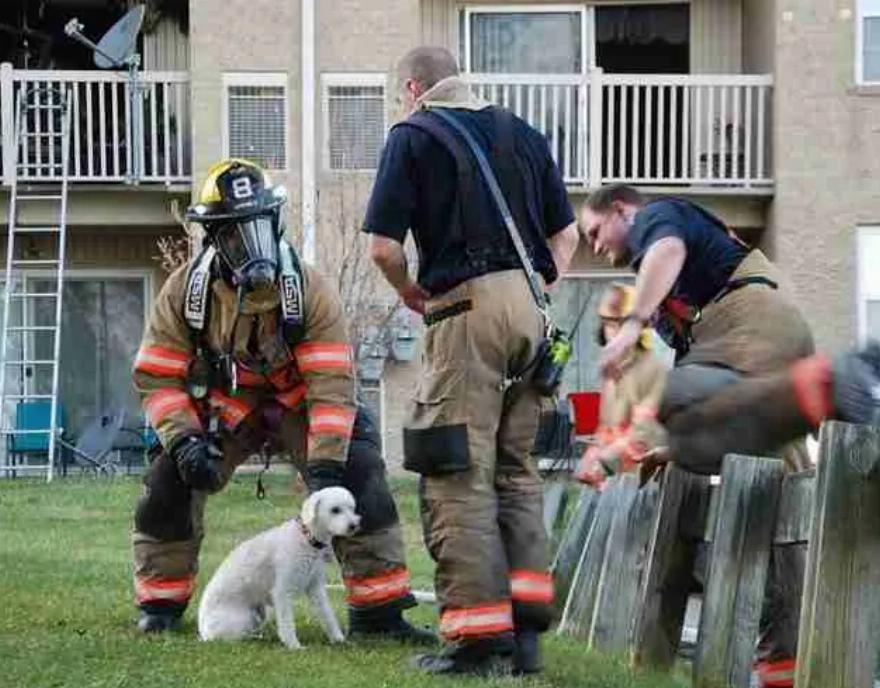 Στις φωτογραφίες ένας από τους πυροσβέστες, ο Γουόλτερ Σάντερς, φαίνεται να μεταφέρει το σκύλο έξω από το κτίριο. Ευτυχώς, κάποιοι άλλοι συνάδελφοι του είχαν την ιδέα να τραβήξουν αυτές τις φωτογραφίες!