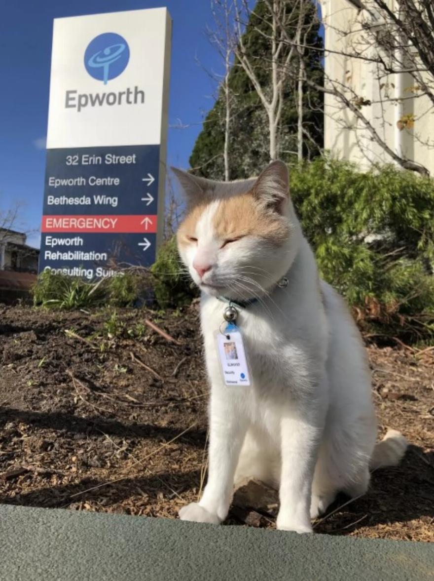 Κάθε μέρα, όταν η Chantel Trollip πηγαίνει στη δουλειά της σε ένα τοπικό νοσοκομείο, την υποδέχονται πολλοί διαφορετικοί συνάδελφοι – μεταξύ των οποίων και ο γάτος Elwood.