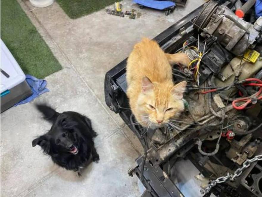 Ο Steve είδε ότι η κοκκινομάλλα γάτα είχε έρθει μαζί του στο γκαράζ, ενώ εξέταζε το αυτοκίνητο. Η γάτα ανέβηκε στο τζιπ με ευκολία, σαν να ήξερε ακριβώς τι έκανε, και φαινόταν να θέλει να μοιραστεί την πλήρη γατίσια εμπειρία της.