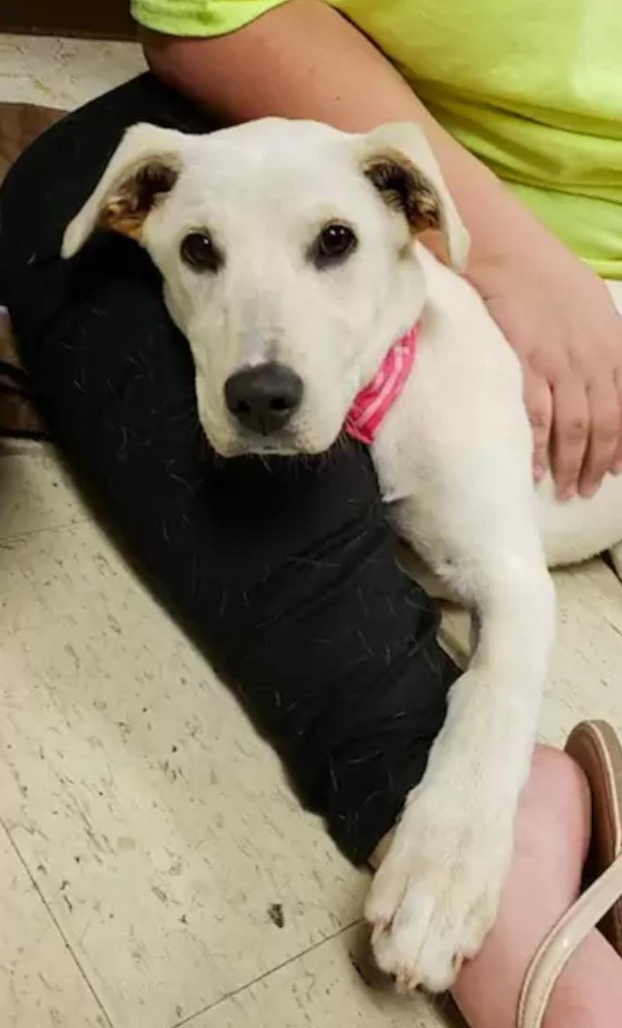Οι άνθρωποι που ανακάλυψαν το κουτάβι κάλεσαν αμέσως την αστυνομία και λίγο αργότερα μεταφέρθηκε στην Ross County Humane Society. Η Monica Denney, η υπεύθυνη του κυνοκομείου, δεν πίστευε στα μάτια της όταν το κουτάβι πρωτοήρθε.